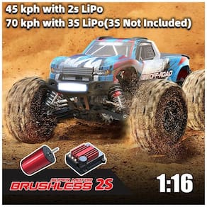 Este Monster Truck sem escova é perfeito para quem busca um carro com grande potencial e que possa ser levado ao próximo nível. Com um motor Hobby 2845 4200kv, independente e um Esc de 45a, este carro é durável e eficiente. Ele vem com engrenagens e diferencial de metal que trabalham juntos para distribuir a potência uniformemente, proporcionando uma experiência 4x4 perfeita. O chassi Honeycomb deste Monster Truck é resistente como pregos e pode lidar com o impacto e a punição como um campeão. Os pneus pré montados com esponja inserida e os amortecedores preenchidos com óleo proporcionam um passeio suave e estável, reduzindo vibrações e garantindo aderência firme ao solo para saltos. Este carro é feito para acrobacias malucas, como grandes saltos, cavalinhos e cambalhotas. Com uma bateria Lipo recarregável de 2s 7,4v 1050 Mah 25c e motor sem escova, ele pode atingir velocidades de mais de 28 mph e 45 km h para adultos medidos por GPS. O Esc esperto independente perfeitamente compatível de 2s3s 45a apoia um sistema de energia 3s. Alcance velocidades furiosas de 43 mph e 70 km h com uma bateria Lipo de 3s vendida separadamente. Acessórios de atualização também estão disponíveis para compra separadamente para um desempenho ainda maior. O rádio com controle remoto de 2,4 ghz e 3 canais com controle de barra de luz e interruptor de limite de 70 aceleradores é perfeito para iniciantes ou crianças.