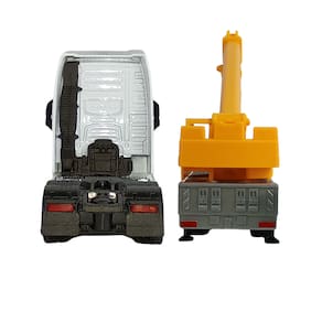 Material: Fabricado em metal e plástico, garantindo durabilidade e resistência. Pneus: Possui pneus de borracha que proporcionam uma experiência realista. Dimensões: Caminhão: 23,5 cm (C) x 4,5 cm (L) x 5,5 cm (A) Cavalo: 11 cm (C) x 4,5 cm (L) x 5,5 cm (A) Guindaste: 17 cm (C) x 4 cm (L) x 5 cm (A)