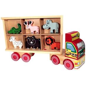Seu Caminhão ZooTrans de Madeira - Brinquedo Educativo Carimbras vem com alguns animais selvagens para você transportar. Mas tenha sempre muito cuidado para garantir seu bem estar!