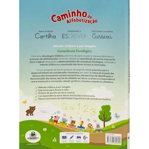 Com uma abordagem didática, este livro de apoio escolar é imprescindível para o processo de alfabetização, tanto em relação ao aprendizado da escrita manuscrita clara e legível como para o desenvolvimento da conciência fonológica, utilizando o método silábico e a associação das letras iniciais às ilustrações. O livro progride de forma gradual, abrangendo desde exercícios para o desenvolvimento da coordenação visomotora, por meio do treino do traçado das letras e dos movimentos corretos escrevê-las, até exercícios de identificação e discriminação das letras, escrita do alfabeto em letras cursivas e correspondências entre maiúscula e minúscula, relação grafema x fonema e sequência alfabética. Editora: BrasiLeitura ISBN: 9788537655801 Dimensões: 20 cm x 27 cm Número de Páginas: 96 Acabamento: Brochura Marca: Não Informado Ean: 9788537655801