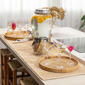 Caminho De Mesa Copa E Cia Parvati Caminho de Mesa Copa e Cia Parvati - Características Gerais do Produto: - Composição: Algodão; Juta - Detalhes: Peça Vendida de Forma Individual.; Design Exclusivo Copa&Cia.; Produzido na Índia.; As cores podem sofrer pequenas alterações de cor, variando de monitor para monitor.; Os objetos que ambientam as fotos não acompanham o produto.; As fotos produzidas são apenas como sugestão de uso com as demais peças da coleção.; Por ser uma peça com fibras naturais, pode ocorrer pequenas variações de tonalidade. - Cuidados: Não Deixar de Molho.; Não recomendado limpar a seco.; Armazenar em local seco e arejado.; Não Passar; Evitar contato com objetos cortantes ou superaquecidos.; Não molhar; Não torcer ou dobrar totalmente o produto.; Não utilizar solventes, abrasivos ou alvejantes.; Limpar manualmente com pano úmido e detergente neutro.; Não secar ao sol. - Dimensões (cm): Largura: 45 cm; Comprimento: 170 cm Acompanha o produto: - 1 Peça de Caminho de Mesa Garantia: - 7 dias/30 dias contra defeito de fabricação