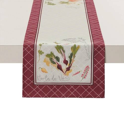 Caminho de Mesa Karsten Hortaliça Estilo: Casual Cor: Estampado Composição: 66% Algodão, 34% Poliéster Ítens inclusos: 1 Trilho de Mesa Acabamento: Estampa Dimensionada Medida: 30cm x 1,00m