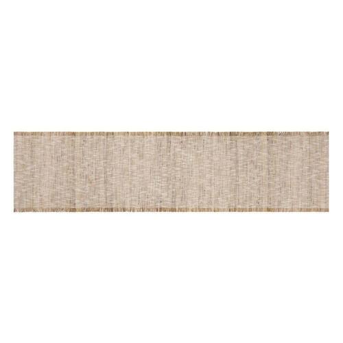 A linha Rami é produzida de forma artesanal, no material é aplicado uma goma, proporcionando maior rigidez e durabilidade às peças. Detalhes Composto por 100% rami (fibras naturais). Possui acabamento em goma especial, garantindo proteção e rigidez ao produto. Cuidados Limpar apenas com pano úmido no local sujo. Não podem ser introduzidos na lava-louças. Não molhar totalmente. Não utilizar solventes, abrasivos e outros produtos químicos. Manter em local seco e arejado. Cor/estampa:Natural Dimensões:40 cm x 160 cm