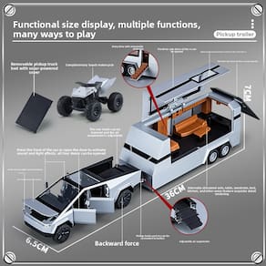 Material: liga Cor: prata Tamanho da embalagem: 36 x 6,5 x 7 cm Peso da embalagem: 0,44 kg Lista de embalagem: 1 x Toy Car Efeitos de som e luz realistas: o modelo de caminhonete e trailer Tesla em escala 1:32 apresenta efeitos de som e luz realistas, criando uma experiência imersiva para crianças e colecionadores. Perfeito para exibição ou jogo interativo. Abrindo portas para maior realismo: este modelo vem com portas de abertura funcionais, permitindo que as crianças interajam com o veículo. A atenção aos detalhes o torna um item de colecionador excepcional ou um brinquedo divertido para crianças. Mecanismo de retração para diversão: o modelo de caminhão tem um recurso de retração, permitindo que ele role para frente quando solto. Esse recurso repleto de ação incentiva brincadeiras criativas e o torna divertido para crianças de todas as idades. Construção em liga durável: feito de liga de alta qualidade e projetado com precisão, este modelo foi construído para durar. A picape Tesla prateada é uma adição impressionante a qualquer coleção de brinquedos ou prateleira de exibição. Perfeito para exibir e presentear: ideal para colecionadores ou como presente para entusiastas de carros, este modelo combina funcionalidade e estética. Seja para brincar ou exibir, é um ótimo complemento para qualquer coleção ou como presente.