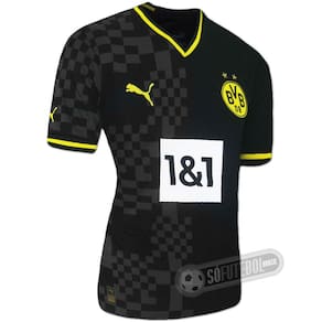 INFORMAÇÕES TÉCNICAS Equipe: Ballspiel-Verein Borussia 1909 e. V. Dortmund Modelo do Uniforme: II (Reserva) Temporada: 2022-2023 Cidade: Dortmund Região: Renânia do Norte-Vestfália País: Alemanha Continente: Europa Fundação: 1909 Estádio: Signal Iduna Park Capacidade: 81.365