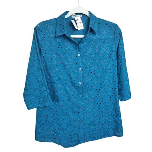 Características: O modelo possui mangas 3/4, o acabamento conta com botões discretos na mesma cor do tecido, perolados. Fabricada em Laise de Algodão, um tecido de caimento impecável e toque macio. Use em todas as ocasiões!