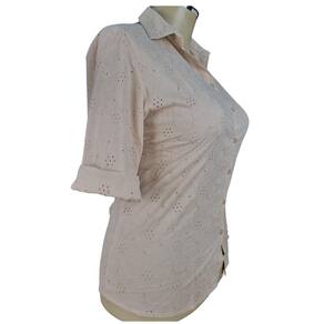 Características: O modelo conta com mangas 3/4, o acabamento conta com botões discretos na mesma cor do tecido. Fabricada em Laise de algodão, um tecido leve, de caimento impecável e toque macio. Use em looks na praia, compondo looks com jeans em uma pegada mais urbana, ou até mesmo com um look mais casual, uma peça que vale.