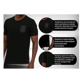 A Camisa Casual Corinthians All Black Logo Bordado Oficial é a escolha perfeita para os torcedores que desejam expressar seu amor pelo clube de forma elegante e descontraída. Com um design sofisticado em preto total, esta camisa destaca-se pelo seu escudo bordado, que simboliza a paixao e a tradicao do Corinthians.