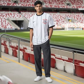 Confeccionada em poliéster de alta qualidade, proporciona conforto e liberdade de movimento, permitindo que voce se sinta a vontade enquanto apoia o seu time. O gola redonda e o escudo estampado garantem um visual autentico e cheio de estilo, refletindo a paixao pelo Corinthians.