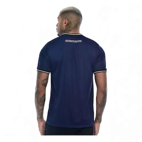 Fabricada em 100% poliéster, a camisa oferece leveza e durabilidade, garantindo que voce se sinta confortável durante todo o dia. O decote em V e as mangas curtas proporcionam um ajuste perfeito, tornando-a uma peca versátil para o seu guarda-roupa.