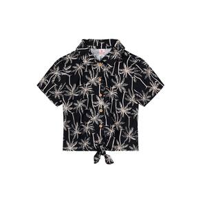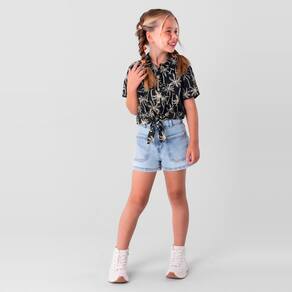 Camisa cropped infantil menina confeccionada em malha, a peça de modelagem cropped conta com abertura frontal por botões finalizando com detalhe de amarração, estampa rotativa tal pai tal filhos, perfeita para um presenteável de dias dos pais, mangas curtas e gola. Aposte, o papai vai amar e elas também!