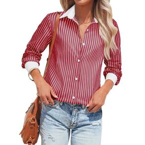 siliteelon Camisas femininas de algodão com botões, listradas, listradas, manga comprida, gola e gola, B vermelho vinho listrado, G - Material – As camisas femininas de manga comprida e botão listradas da siliteelon são feitas com 100% algodão. Macia e confortável, leve, respirável, não encolhe facilmente. Tamanho dos EUA. PP = (EUA 0-36), P = (38-40), M = (42-44), G = (46-48), GG = (50-52), 2GG = (54-56), 3GG = (54-69). Usamos o tamanho padrão americano. Fique tranquilo ao comprar. - Características: Camisa de botão para mulheres, camisa feminina de botão, camisa social listrada de algodão, mangas compridas, blusa elegante risca, túnicas com gola V, camisas de botão listrado vertical para trabalho formal e negócios. Esta blusa listrada para mulheres pode ser enrolada para um estilo descontraído e descolado. Esta blusa casual de manga comprida com botões deixa você mais chique, elegante e sexy. - Combinação: A camisa de algodão oxford de manga comprida com botão deixa você livre e confortável. É perfeita com leggings, jeans, calças justas, calças skinny, botas de salto etc. Ocasiões: Ótimo para todas as ocasiões - casual, férias, festa, trabalho, compras, encontros ou uso diário. Também é perfeita para usar como uma blusa de praia de manga comprida. Camisetas formais listradas brancas amarelas, marrom e branco, além de blusa listrada leve e macia para trabalho - Uma ampla variedade de cores: camisas femininas de botão azuis e brancas, camisas sociais de algodão listrado azul, blusa oxford listrada roxa feminina, camisas femininas listradas de botão cinza profundo, camisetas femininas com botão listrado rosa e branco, camisas de manga comprida listradas vermelhas para trabalho, camisas de popeline listrada preta para mulheres negócios, camisa listrada vertical azul marinho, camisas de smoking verde e branco para escritório, camisa listrada de linho rosa claro - Camisa fácil de cuidar – Lavável à máquina/à mão, não usar alvejante. Segure bem após a lavagem, pendure para secar. Consulte a tabela de tamanhos para escolher o tamanho que mais lhe convier. Se você tiver alguma dúvida sobre a blusa com gola listrada de algodão e camisas de botão, sinta-se à vontade para entrar em contato conosco, responderemos e resolveremos seus problemas em tempo hábil.