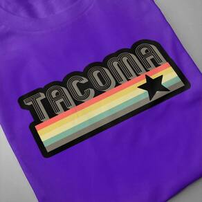 — GTUGHDK Tacoma City Retro 70s Washington1 camiseta casual confortável para adultos, camiseta esportiva roxa