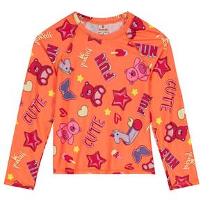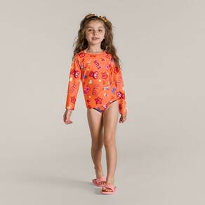 Camiseta infantil unissex Beach wear confeccionada em malha com proteção UV, perfeita para os momentos ao ar livre com exposição ao sol, possui estampa, as mangas longas e a gola redonda. Aposte nessa opção confortável e segura e deixe os pequenos aproveitarem!