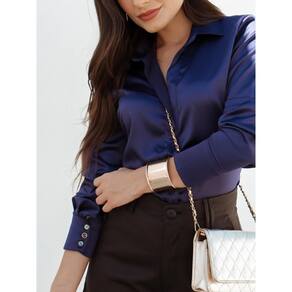 Clássica camisa social feminina manga longa Teodoro em crepe acetinado.