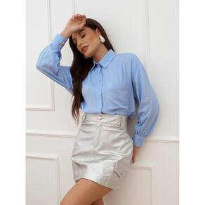 Camisa social estilo linho de alfaiataria feminina manga longa Teodoro.