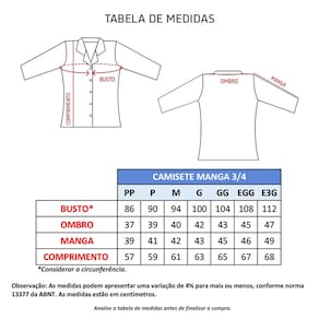 A Camisa feminina ACINTURADA, também chamada de Camisete manga ¾ é confeccionada em Grafil.