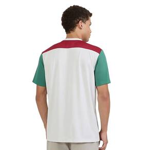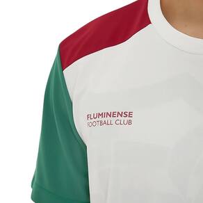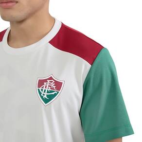 Visual: Apresenta um design contemporâneo com o corpo predominantemente em tons claros (off-white ou branco) e detalhes contrastantes nas cores icônicas do clube (verde e grená/bordô) nas mangas e ombros.Detalhes do Escudo: O escudo do Fluminense é estampado no peito, garantindo um acabamento leve e que não incomoda no contato com a pele. Em algumas versões do modelo, há também uma estampa "maximalista" em toque zero (tom sobre tom) que adiciona uma textura dinâmica à peça.Versatilidade: É indicada tanto para momentos de lazer e torcida quanto para atividades casuais ou treinos leves.Modelo: Pulsar;