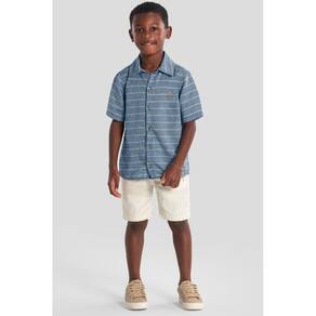 Camisa infantil menino fio tinto listrado Mundi - Azul médio - 8