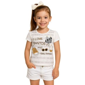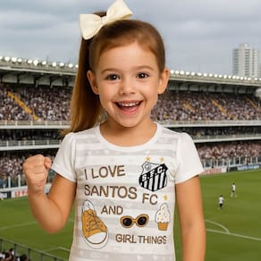 O modelo apresenta um gola redonda e um escudo estampado, que destaca a paixao pelo Santos Futebol Clube. Ideal para ocasioes comemorativas, essa camisa é uma forma divertida de incentivar o espírito esportivo desde cedo, permitindo que as meninas se sintam parte da torcida.