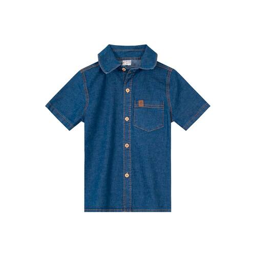 Camisa infantil menino confeccionada em jeans leve, ideal para compor um visual moderno, a peça conta com gola, mangas curtas e abertura frontal com fechamento por botões, bolso funcional na região do peito e etiqueta decorativa. Crie sobreposições com as camisetas básicas da coleção, fica super estiloso!