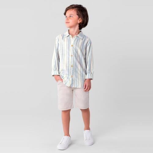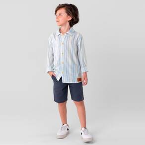 Camisa infantil menino confeccionada em tricoline, a escolha ideal para meninos que buscam conforto e estilo em suas roupas. A peça possui abertura frontal com fechamento por botões, decote com gola, aplique termocolante na barra e mangas longas. Combine com diversas peças do guarda-roupa, esta camisa é uma adição versátil e elegante para o visual do seu filho. Invista! *variante 2418 confeccionada em tricoline stripe e variante 1420 confeccionada em tricoline texture.
