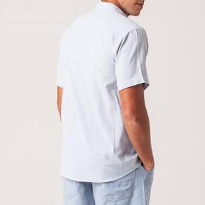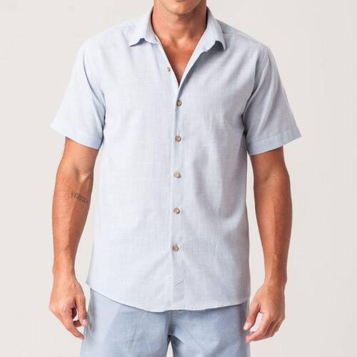 A camisa social masculina slim conta com gola esporte, abotoamento frontal e mangas curtas.
