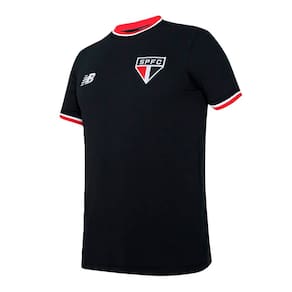 - Detalhamento: Camiseta manga curta, gola careca, logo New Balance na altura do peito ao lado direito, distintivo do SP na altura do peito ao lado esquerdo, caimento padrão, modelo retro;