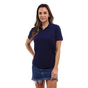 Camisa Polo Feminina Manga Curta Piquet Dia a Dia Kit 3 - Azul Marinho - M