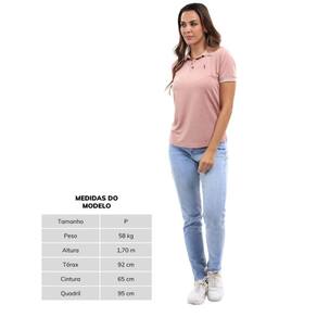 Camisa Polo Feminina Manga Curta Piquet Dia a Dia - Rosa Claro - G