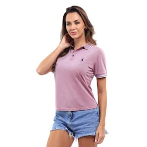 Camisa Polo Feminina Manga Curta Piquet Dia a Dia - Azul Bebê - P