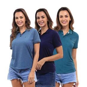 Camisa Polo Feminina Manga Curta Piquet Moderna Leve Kit 3 - Azul doce - G