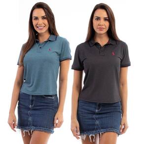 Camisa Polo Feminina Viscose Manga Curta Kit 2 Casual - Sortido - EGG