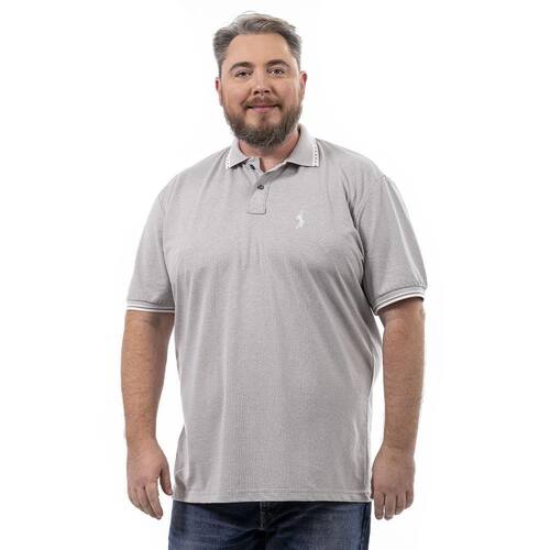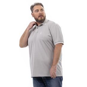 Camisa Polo Masculina Básica Plus Size Algodão Confortável - Cinza Claro - G1