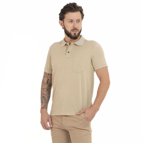 Camisa Polo Masculina Pique Algodão com Bolso Casual - Bege - P
