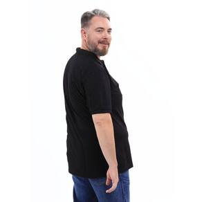 Camisa Polo Masculina Plus Size Pique Algodão com Bolso - Preto - G3