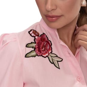 Camisa Social Feminina Bordado Floral Algodão Luxo Teodoro - Rosa - M