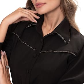 Camisa Social Feminina Confortável Strass Moderna Teodoro - Preto - P