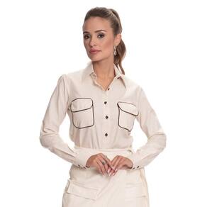 Camisa Social Feminina Linho Natural Bolsos Moderna Teodoro - Bege Claro - P