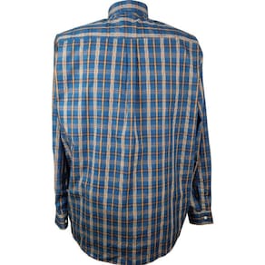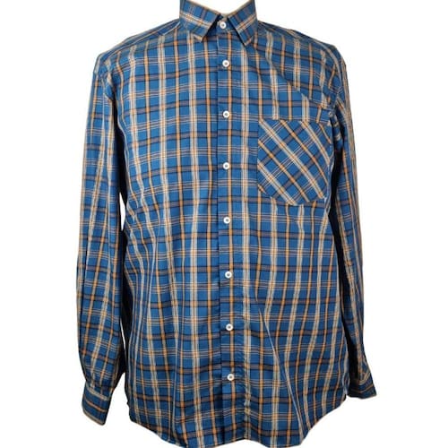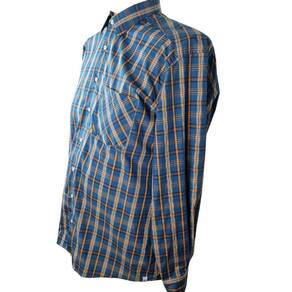 Camisa Social Manga Longa Azul Xadrez Mostarda Plus Size.