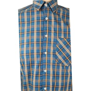 Confeccionada com tecido de alta qualidade, ela apresenta um padrão xadrez vibrante em tons de azul e mostarda, trazendo um toque de personalidade ao seu look.