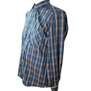 Camisa Social Manga Longa Azul Xadrez Mostarda Plus Size.