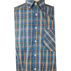 Confeccionada com tecido de alta qualidade, ela apresenta um padrão xadrez vibrante em tons de azul e mostarda, trazendo um toque de personalidade ao seu look.