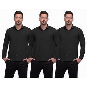 Camisa Social Masculina Manga Longa Botões Lisa Kit 3 - Preto - G