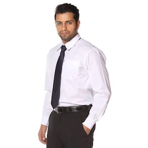 Camisa social manga longa é confeccionada em tecido misto 67% poliéster e 33% algodão.