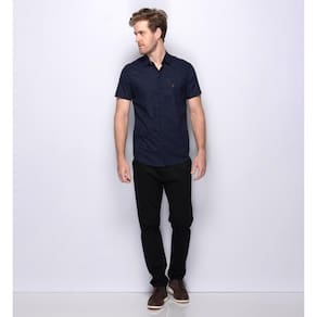 Camisa social manga curta em tricoline botoné off white, totalmente confeccionada com matérias primas nobres. Seu fechamento com vista embutida e detalhes do botoné conferem ar clean, moderno e arrojado. Corte slim fit, botões personalizados, barra levemente arredondada e mangas mais justas desde a axila, que se ajustam perfeitamente ao corpo. Gola esportiva de peso leve, e logo da marca bordado.