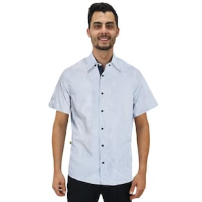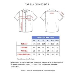 Camisa social masculina manga curta, em modelagem Slim, é confeccionada em tecido tricoline, WK S2 da Santista.
