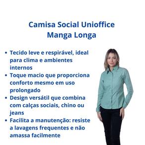 Camisa Social Unioffice Manga Longa Elegância e Conforto para o Trabalho A Camisa Social Unioffice Manga longa é a escolha perfeita para quem busca um visual alinhado e funcional em dias mais quentes. Com modelagem clássica e acabamento de qualidade, garante caimento impecável e liberdade de movimento ao longo do expediente.