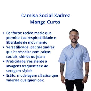 Benefícios - Conforto: tecido macio que permite boa respirabilidade e liberdade de movimento - Versatilidade: padrão xadrez que harmoniza com calças sociais, chinos ou jeans - Praticidade: resistente a lavagens frequentes e de secagem rápida - Estilo: modelagem clássica que valoriza qualquer look