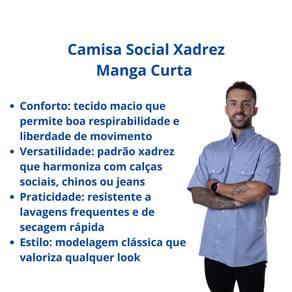 Benefícios - Conforto: tecido macio que permite boa respirabilidade e liberdade de movimento - Versatilidade: padrão xadrez que harmoniza com calças sociais, chinos ou jeans - Praticidade: resistente a lavagens frequentes e de secagem rápida - Estilo: modelagem clássica que valoriza qualquer look
